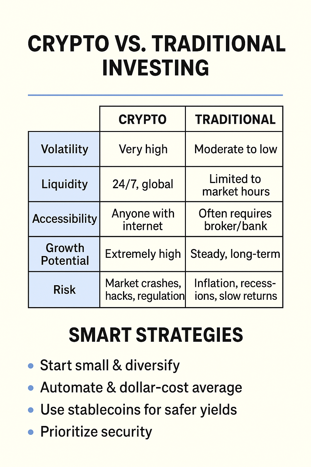 The takeaway? Crypto offers growth and flexibility, but traditional finance provides stability. The sweet spot lies in combining both.